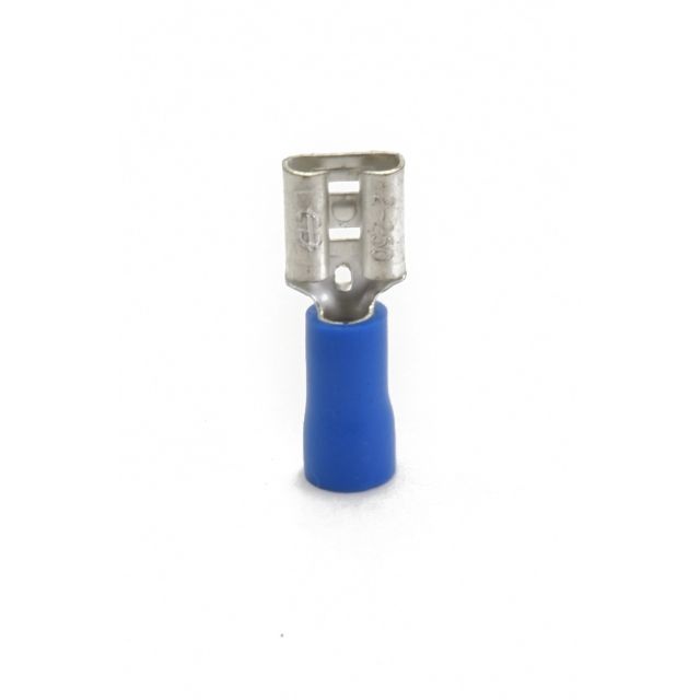 Omschrijving: Opschuifcontact vrouwelijk 6,3x0,8mm Kleur: Blauw Diameter kabel: 1,5-2,5mm² Verpakking: 100 stuks / zak