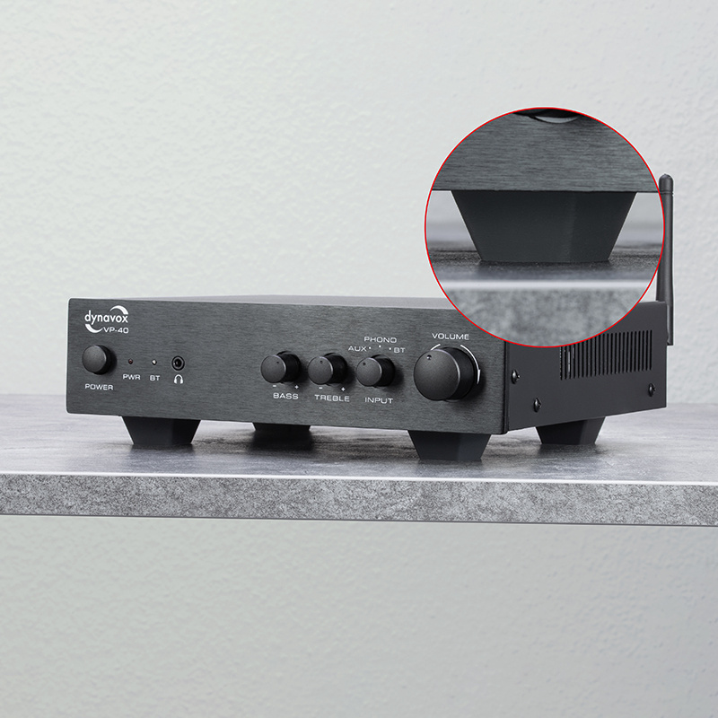Met de Dynavox siliconen elastomeer dempers bereikt u eenvoudig een zeer effectieve demping van resonanties en trillingen in uw hifi-apparatuur, of het nu gaat om platenspelers, cd-spelers, versterkers, luidsprekers of subwoofers. De set bevat vier dempers met een totale belasting tot 16 kg, die met een 3M kleefpad (op het grootste oppervlak van de trapezium) kunnen worden bevestigd. Uiteraard zijn de dempers ook geschikt voor vele andere apparaten of situaties waar ongewenste trillingen of resonanties moeten worden voorkomen